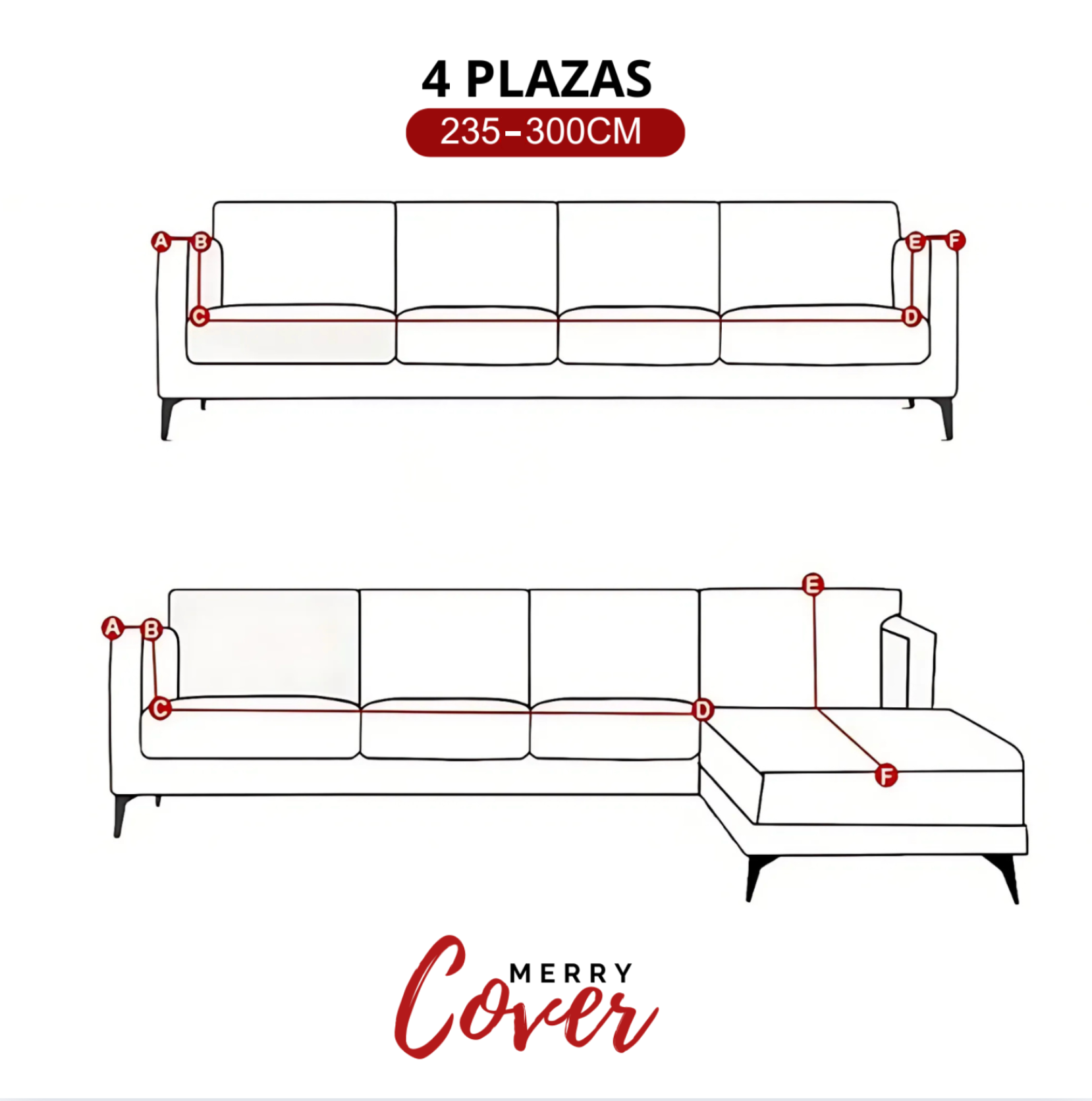 Sí,MerryCover se adapta perfectamentea sofás de1, 2, 3 y 4 plazas, gracias a sutejido elástico y flexible.